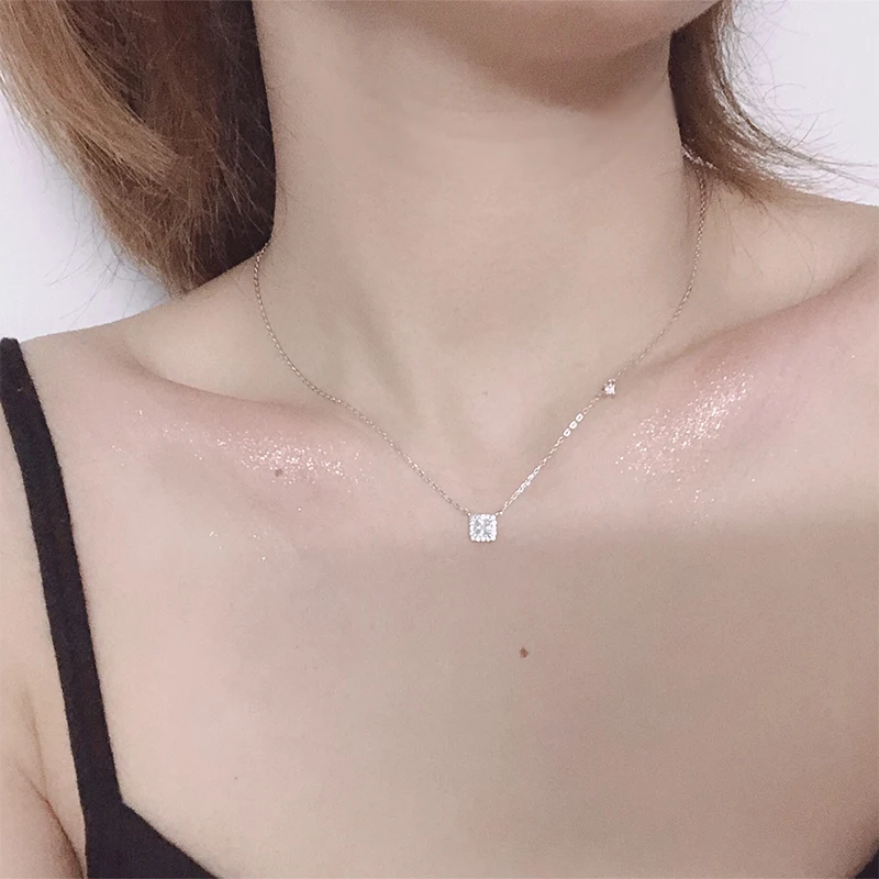 Name: Collar con colgante de diamante cuadrado pequeño para mujer, de Plata de Ley 925, cadena Simple de clavícula brillante a la moda, joyería de boda, regalo de fiesta