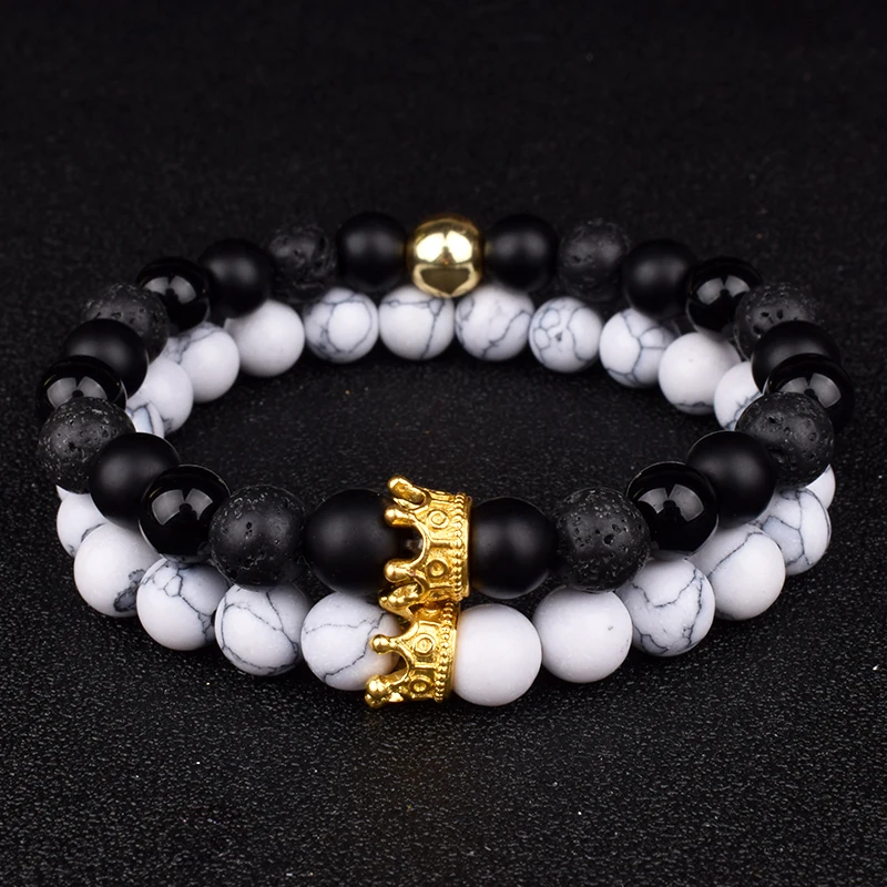 Name: 2 uds. De pulseras combinadas con abalorios, conjuntos para hombre y mujer, corona, pulsera de cuentas de piedra Natural, pulsera para pareja, regalos, joyería para amigos