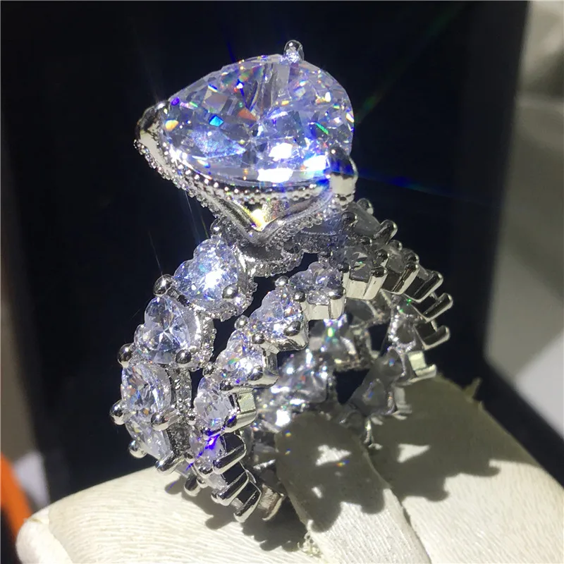 beautiful beautiful ring looks just like the one offset gave cardi b heartshape wedding ring and band it's simply put just stunning . this seller never disappoint I have bought three sets from them and I will purchase more stuff just gorgeous makes u feel pretty & classy .looks like money baby. sparkles & shines beautifully