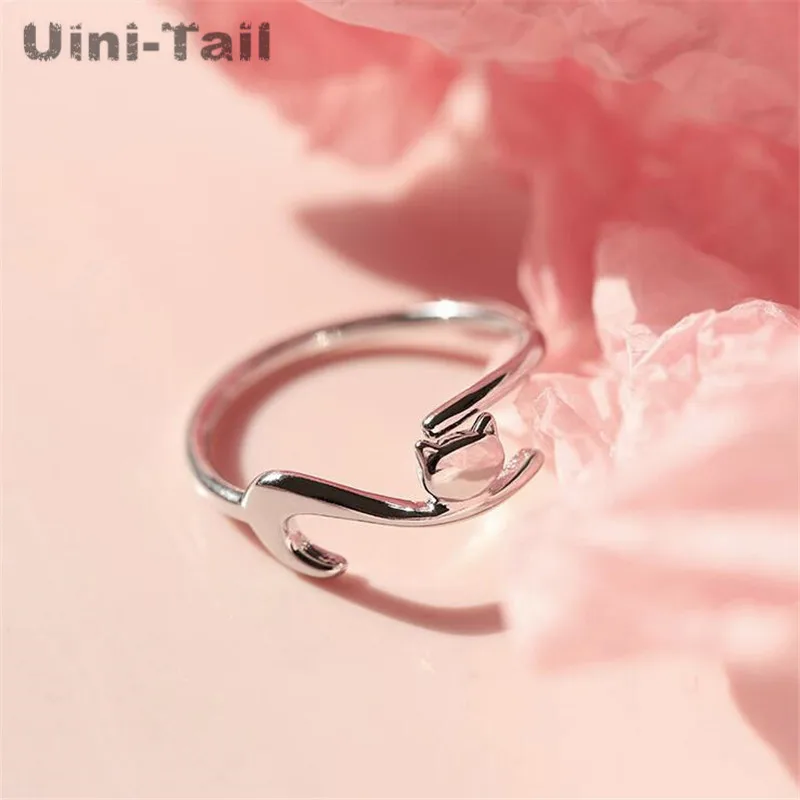 Mejor Joyería fina de Uini-tail 925 Silver Store por Uini-tai-anillo abierto de estrella de gato perezoso, Plata de Ley 925, diseño creativo de moda, accesorios para estudiantes de alta calidad